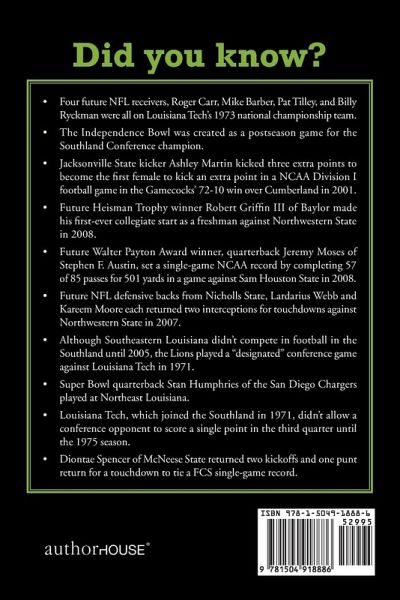 Did you know? Four future NFL receivers, Roger Carr, Mike Barber, Pat Tilley, and Billy Ryckman were all on Louisiana Tech's 1973 national championship team. The Independence Bowl was created as a postseason game for the Southland Conference champion. Jacksonville State kicker Ashley Martin kicked three extra points to become the first female to kick an extra point in a NCAA Division I football game in the Gamecocks' 72-10 win over Cumberland in 2001. Future Heisman Trophy winner Robert Griffin III of Baylor made his first-ever collegiate start as a freshman against Northwestern State in 2008. Future Walter Payton Award winner, quarterback Jeremy Moses of Stephen F. Austin, set a single-game NCAA record by completing 57 of 85 passes for 501 yards in a game against Sam Houston State in 2008. Future NFL defensive backs from Nicholls State, Lardarius Webb and Kareem Moore each returned two interceptions for touchdowns against Northwestern State in 2007. Although Southeastern Louisiana didn't compete in football in the Southland until 2005, the Lions played a "designated" conference game against Louisiana Tech in 1971. Super Bowl quarterback Stan Humphries of the San Diego Chargers played at Northeast Louisiana. Louisiana Tech, which joined the Southland in 1971, didn't allow a conference opponent to score a single point in the third quarter until the 1975 season. Diontae Spencer of McNeese State returned two kickoffs and one punt return for a touchdown to tie a FCS single-game record.