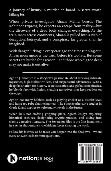 A journey of luxury. A murder on board. A secret worth killing for. When private investigator Ahaan Mehra boards The Kohinoor Express, he expects an escape from reality-but the discovery of a dead body changes everything. As the train races across continents, Ahaan is pulled into a web of deception, betrayal, and a conspiracy far greater than he imagined. With danger lurking in every carriage and time running out, Ahaan must uncover the truth before it's too late. But some secrets are buried for a reason... and those who dig too deep may not make it out alive.