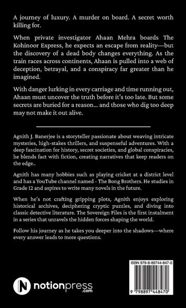 A journey of luxury. A murder on board. A secret worth killing for. When private investigator Ahaan Mehra boards The Kohinoor Express, he expects an escape from reality-but the discovery of a dead body changes everything. As the train races across continents, Ahaan is pulled into a web of deception, betrayal, and a conspiracy far greater than he imagined. With danger lurking in every carriage and time running out, Ahaan must uncover the truth before it's too late. But some secrets are buried for a reason... and those who dig too deep may not make it out alive.