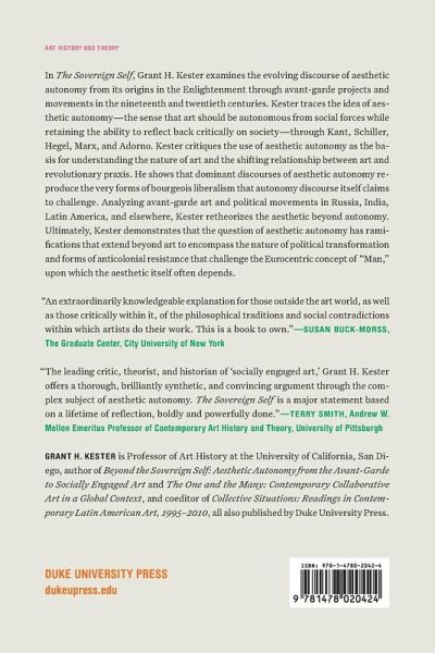 In The Sovereign Self, Grant H. Kester examines the evolving discourse of aesthetic autonomy from its origins in the Enlightenment through avant-garde projects and movements in the nineteenth and twentieth centuries. Kester traces the idea of aesthetic autonomy-the sense that art should be autonomous from social forces while retaining the ability to reflect back critically on society-through Kant, Schiller, Hegel, Marx, and Adorno. Kester critiques the use of aesthetic autonomy as the basis for understanding the nature of art and the shifting relationship between art and revolutionary praxis. He shows that dominant discourses of aesthetic autonomy reproduce the very forms of bourgeois liberalism that autonomy discourse itself claims to challenge. Analyzing avant-garde art and political movements in Russia, India, Latin America, and elsewhere, Kester retheorizes the aesthetic beyond autonomy. Ultimately, Kester demonstrates that the question of aesthetic autonomy has ramifications that extend beyond art to encompass the nature of political transformation and forms of anticolonial resistance that challenge the Eurocentric concept of "Man," upon which the aesthetic itself often depends.