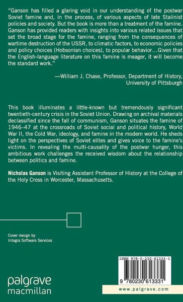 "The story of the 1946-47 Soviet famine has largely been ignored by historians and economists and this is the first major account of the event in English by a Western scholar. Nicholas Ganson has meticulously pieced together archival evidence as well as previously published material to describe and analyze the causes and consequences of the famine. A generally illuminating account of a significant aspect of the Soviet experience after World War II." - The Russian Review