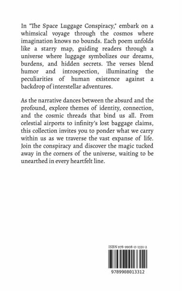 In "The Space Luggage Conspiracy," embark on a whimsical voyage through the cosmos where imagination knows no bounds. Each poem unfolds like a starry map, guiding readers through a universe where luggage symbolizes our dreams, burdens, and hidden secrets. The verses blend humor and introspection, illuminating the peculiarities of human existence against a backdrop of interstellar adventures. As the narrative dances between the absurd and the profound, explore themes of identity, connection, and the cosmic threads that bind us all. From celestial airports to infinity's lost baggage claims, this collection invites you to ponder what we carry within us as we traverse the vast expanse of life. Join the conspiracy and discover the magic tucked away in the corners of the universe, waiting to be unearthed in every heartfelt line.