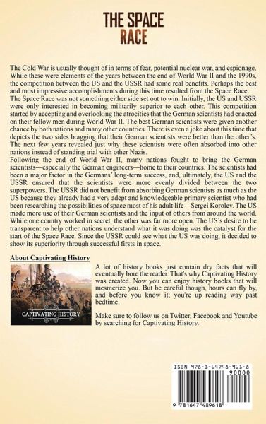 If you want to discover the captivating history of the Space Race, then keep reading... The Cold War is usually thought of in terms of fear, potential nuclear war, and espionage. While these were elements of the years between the end of World War II and the 1990s, the competition between the US and the USSR had some real benefits. Perhaps the best and most impressive accomplishments during this time resulted from the Space Race. The Space Race was not something either side set out to win. Initially, the US and USSR were only interested in becoming militarily superior to each other. This competition started by accepting and overlooking the atrocities that the German scientists had enacted on their fellow men during World War II. The best German scientists were given another chance by both nations and many other countries. There is even a joke about this time that depicts the two sides bragging that their German scientists were better than the other's. The next few years revealed just why these scientists were often absorbed into other nations instead of standing trial with other Nazis. In The Space Race: A Captivating Guide to the Cold War Competition Between the United States and Soviet Union to Reach the Moon, you will discover topics such asThe End of World War II, the Fate of German Scientists, and the Future of an Unassuming Ukrainian A Brief Overview of the Cold War Rivalry A Grand Announcement: Both Nations Pledge to Launch Satellites The USSR and USA Prepare Their Satellites and Their Sites Russian Accomplishes Several Firsts with Sputnik 1, 2, and 3 Americans Play Catchup Different Approaches to Getting the First Men in Space The First Men in Space JFK's Resolve and Prediction of the Ultimate Win - Reaching the Moon The Three Primary NASA Programs The First Spacewalks The First Successful Spacecraft Docking Apollo 11 - One Small Step for Man Those Who Gave Their Lives The Long, Bumpy Road to Coordination And much, much more! So if you want to learn more about the Space Race, scroll up and click the "add to cart" button!