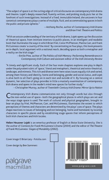 "The subject of space is at the cutting edge of critical discourse on contemporary Irish drama and theatre. Lojek's deeply researched, fluently written, and probing study puts her at the forefront of such investigations. Instead of a fixed, immutable Ireland, she uncovers in four canonical contemporary plays a series of multiple, fluid, and accommodating spaces in both the public and private spheres." - Anthony Roche, author of Contemporary Irish Drama and Brian Friel: Theatre and Politics