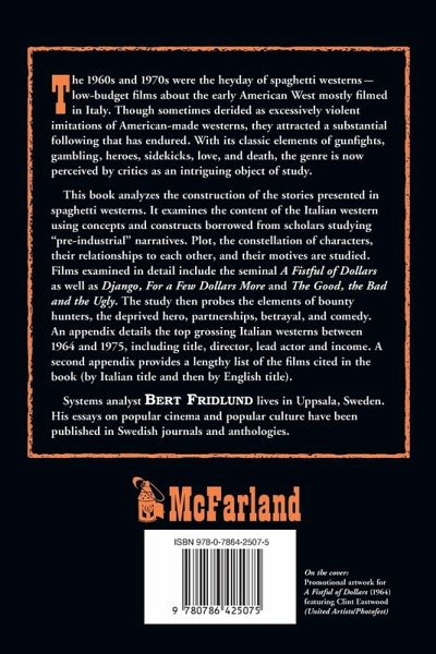 The 1960s and 1970s were the heyday of spaghetti westerns--low-budget films about the early American West mostly filmed in Italy. Though sometimes derided as excessively violent imitations of American-made westerns, they attracted a substantial following that has endured. With its classic elements of gunfights, gambling, heroes, sidekicks, love, and death, the genre is now perceived by critics as an intriguing object of study. This book analyzes the construction of the stories presented in spaghetti westerns. It examines the content of the Italian western using concepts and constructs borrowed from scholars studying "pre-industrial" narratives. Plot, the constellation of characters, their relationship to each other, and their motives are studied. Films examined in detail include the seminal A Fistful of Dollars as well as Django, For a Few Dollars More and The Good, the Bad and the Ugly. There is also a discussion of the early spaghetti westerns. The study then probes the elements of bounty hunters, the deprived hero, partnerships, betrayal, and comedy. An appendix details the top grossing Italian westerns between 1964 and 1975, including title, director, lead actor and intake. A second appendix provides a list of films quoted by Italian title and then by English title.
