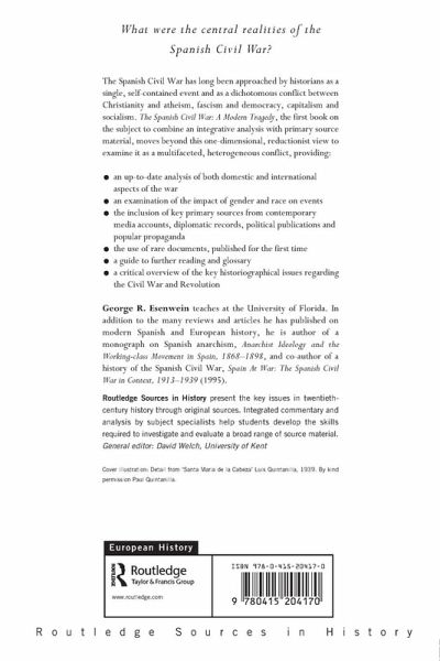 This exciting collection of primary sources on the Spanish Civil War uses military and political documents, media accounts, and contemporary propaganda to create a representative and illuminating survey of this enormously complicated event more than sixty-five years after it ended.