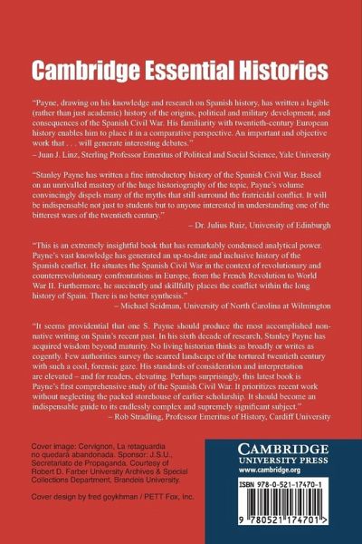 This book presents a new history of the most important conflict in European affairs during the 1930s, the Spanish Civil War. It describes the complex origins of the conflict, the collapse of the Spanish Republic and the outbreak of the only mass worker revolution in the history of Western Europe. Stanley Payne explains the character of the Spanish revolution and the complex web of republican politics, while also examining the development of Franco's counter-revolutionary dictatorship. Payne gives attention to the multiple meanings and interpretations of war and examines why the conflict provoked such strong reactions at the time, and long after. The book also explains the military history of the war and its place in the history of military development, the non-intervention policy of the democracies and the role of German, Italian and Soviet intervention, concluding with an analysis of the place of the war in European affairs, in the context of twentieth-century revolutionary civil wars.