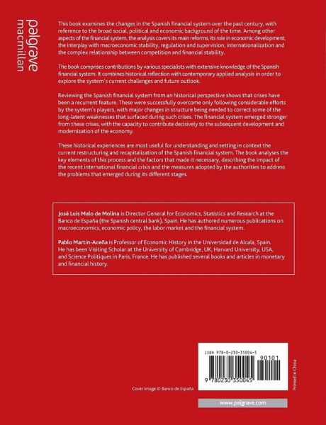 Introduction Spain in the 20th Century: The End of the Exception?; S.Juliá A Century of the Spanish Economy; G.Tortella & J.L.Garcia Ruiz The Main Reforms of the Spanish Financial System; M.Á.Pons The Spanish Banking System from 1900 to 1975; P.Martin-Aceña The Savings Banks: 1900-1975; F.Comín The Macroeconomic Basis of the Recent Development of the Spanish Financial System; J.L.Malo de Molina Banking Supervision and Regulation over the Past 40 Years; R.Poveda Spanish Securities Markets: Recent Developments and Key Challenges; F.Restoy & R.S.de la Peña Integration, Competition and Stability of the Financial System; J.Saurina The Internationalization of the Spanish Financial System; Á.Berges, E.Ontiveros & F.J.Valero The Spanish Financial Industry at the Start of 21st Century: Current Situation and Future Challenges; X.Vives