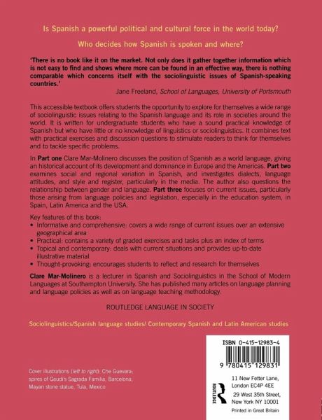 "The Spanish Speaking World" explores a wide range of sociolinguistic issues relating to the Spanish language and its role in societies around the world. Clare Mar-Molinero begins with a discussion of the position of Spanish as a world language, giving an historical account of its development and dominance. She continues with an examination of social and regional variation in Spanish, and investigates dialects, language attitudes, and style and register, particularly in the media. She also questions the relationship between gender and language. The book ends with a focus on current issues,…mehr