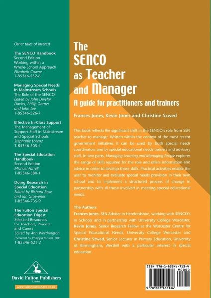 This text reflects the shift in the SENCO's role from SEN teacher to manager. Written within the context of the most recent government initiatives, it can be used by both special-needs coordinators and by special-educational-needs trainers and advisory staff. In two parts, it explores the range of skills required for the role of special needs coordinator and offers information and advice to develop those skills. Practical activities enable the user to monitor and evaluate special-needs provision in their own school and to implement a structured process of change in partnership with all those involved in meeting special educational needs.
