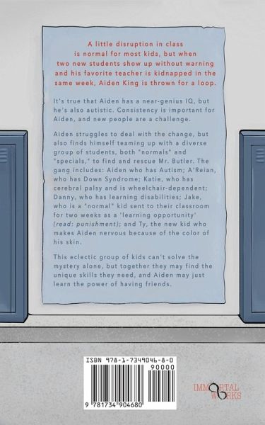 Aiden King loves that middle school is predictable. That's because while Aiden has a near-genius IQ, he's also autistic. Seeing the same faces in class every day, A'Reian, who has Down Syndrome; Katie, who has cerebral palsy and is wheelchair-dependent; Danny, who has learning disabilities, and Mrs. Carlson, his green-haired special education teacher, keeps his world spinning perfectly. Until two new students show up. Aiden can't understand why they would send a couple of "normals" to his class. But when his math teacher is mysteriously kidnapped, Aiden finds himself teaming up with them to rescue Mr. Butler. This eclectic group of kids can't solve the mystery alone, but together they may find the unique skills they need, and Aiden may just learn the power of having friends.