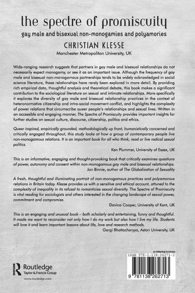 Wide-ranging research suggests that partners in gay male and bisexual relationships do not necessarily expect monogamy, or see it as an important issue. Although the frequency of gay male and bisexual non-monogamous partnerships tends to be widely acknowledged in social science literature, these relationships have rarely been explored in more detail. By providing rich empirical data, thoughtful analysis and theoretical debate, this book makes a significant contribution to the sociological literature on sexual and intimate relationships. More specifically it explores the diversity of gay male and bisexual relationship practices in the context of heteronormative citizenship and intra-social movement conflict, and highlights the complexity of power relations that circumscribe queer people's relationships and sexual lives. Written in an accessible and engaging manner, The Spectre of Promiscuity provides important insights for further studies on sexual culture, discourse, citizenship, politics and ethics.