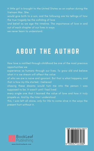 ""A little girl is brought to the United States as an orphan during the Vietnam War. She would give birth to a son, and the following are his tellings of how the true tragedy be the colliding of love and belief as we age the timeline. The importance of love in and out of each chapter of our lives in ways we never learn to understand.""