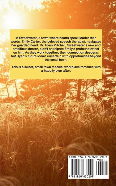 In Sweetwater, a town where hearts speak louder than words, Emily Carter, the beloved speech therapist, navigates her guarded heart. Dr. Ryan Mitchell, Sweetwater's new and ambitious doctor, didn't anticipate Emily's profound effect on him. As they work together, their connection deepens, but Ryan's future looms uncertain with opportunities beyond the small town. This is a sweet, small town medical workplace romance with a happily ever after.