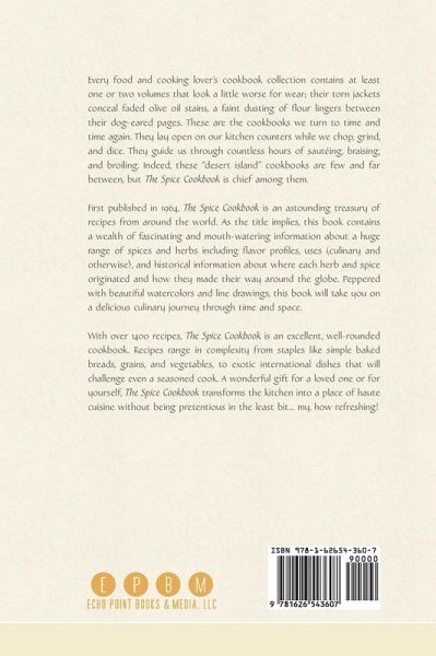 Every food and cooking lover's cookbook collection contains at least one or two volumes that look a little worse for wear; their torn jackets conceal faded olive oil stains, a faint dusting of flour lingers between their dog-eared pages. These are the cookbooks we turn to time and time again. They lay open on our kitchen counters while we chop, grind, and dice. They guide you through countless hours of sautéing, braising, and broiling. Indeed, these "desert island" cookbooks are few and far between, but The Spice Cookbook is chief among them. First published in 1964, The Spice Cookbook is an astounding treasury of recipes from around the world. As the title implies, this book contains a wealth of fascinating and mouth-watering information about a huge range of spices and herbs including flavor profiles, uses (culinary and otherwise), and historical information about where each herb and spice originated and how they made their way around the globe. Peppered with beautiful watercolors and line drawings, this book will take you on a delicious culinary journey through time and space. With over 1400 recipes, The Spice Cookbook is an excellent, well-rounded cookbook. Recipes range in complexity from staples like simple baked breads, grains, and vegetables, to exotic international dishes that will challenge even a seasoned cook. A wonderful gift for a loved one or for yourself, The Spice Cookbook transforms the kitchen into a place of haute cuisine without being pretentious in the least bit... my, how refreshing!