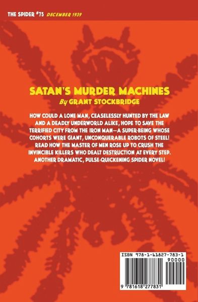 How could a lone man, ceaselessly hunted by the law and a deadly Underworld alike, hope to save the terrified city from the Iron Man-a super-being whose cohorts were giant, unconquerable robots of steel! Read how the Master of Men rose up to crush the invincible killers who dealt destruction at every step. Another dramatic, pulse-quickening Spider novel!