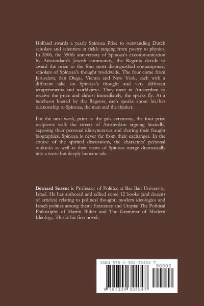 The Spinoza Quartet follows four distinguished contemporary scholars of Spinoza's thought as they meet in Amsterdam to receive the Spinoza Prize. The four come from Jerusalem, San Diego, Vienna and New York, each with a different take on Spinoza's thought and very different temperaments and worldviews, and almost immediately the sparks fly. At several luncheons hosted by the Regents each speaks about their relationship to Spinoza, the man and the thinker. For the next week, prior to the gala ceremony, the four prize recipients walk the streets of Amsterdam arguing heatedly, exposing their personal idiosyncrasies and sharing their fraught biographies. Spinoza is never far from their exchanges. In the course of the spirited discussions the characters' personal outlooks as well as their views of Spinoza merge dramatically into a tense but deeply humane tale.