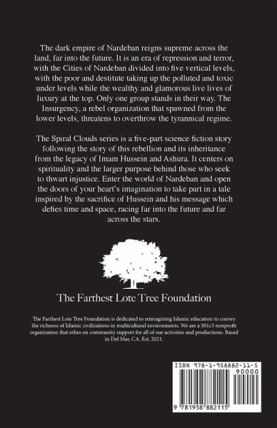 The dark empire of Nardeban reigns supreme across the land, far into the future. It is an era of repression and terror, with the Cities of Nardeban divided into five vertical levels, with the poor and destitute taking up the polluted and toxic under levels while the wealthy and glamorous live lives of luxury at the top. Only one group stands in their way. The Insurgency, a rebel organization that spawned from the lower levels, threatens to overthrow the tyrannical regime. The Spiral Clouds series is a five-part science fiction story following the story of this rebellion and its inheritance from the legacy of Imam Hussein and Ashura. It centers on spirituality and the larger purpose behind those who seek to thwart injustice. Enter the world of Nardeban and open the doors of your heart's imagination to take part in a tale inspired by the sacrifice of Hussein and his message which defies time and space, racing far into the future and far across the stars.