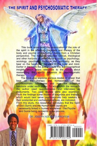 This book is an examination of the role of the spirit in the diagnosis and therapy of psychosomatic pathology. It explores biblical, theological as well as psychology, sociology, psychiatry and medicine, as they work together on the healing of diseases of the body and mind. Earlier in the book the author incurs into autobiographical insights which bears relevance to the vision about researching the spirit's influence in psychosomatic therapy. The book also explores various modes of power that bear on the therapy and homeostasis of the psychosomatic helpseeker and how the individual functions under each mode. To accomplish the research the author used questionnaires and interviews as instruments. Two case studies were also examined. From this study, the researcher concludes that the Spirit of God (Spirit) and the Human spirit (spirit) are necessarily linked in human wholeness - the Psyche and Soma being recipients in the process.