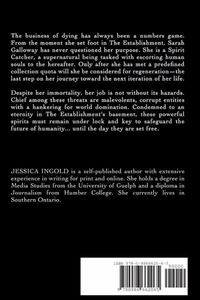 The business of dying has always been a numbers game. From the moment she set foot in The Establishment, Sarah Galloway has never questioned her purpose. She is a Spirit Catcher, a supernatural being tasked with escorting human souls to the hereafter. Only after she has met a predefined collection quota will she be considered for regeneration-the last step on her journey toward the next iteration of her life. Despite her immortality, her job is not without its hazards. Chief among these threats are malevolents, corrupt entities with a hankering for world domination. Condemned to an eternity in The Establishment's basement, these powerful spirits must remain under lock and key to safeguard the future of humanity... until the day they are set free.