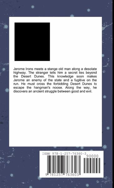 Jerome Irons meets a strange old man along a desolate Highway. The stranger tells him an unbelievable tale of a secret that lies beyond the Desert Dunes. The knowledge soon makes him an enemy of the state and a fugitive on the run. He must cross the forbidding Desert Dunes the escape the hangman's noose. Along the way, he discovers an ancient struggle between good and evil.