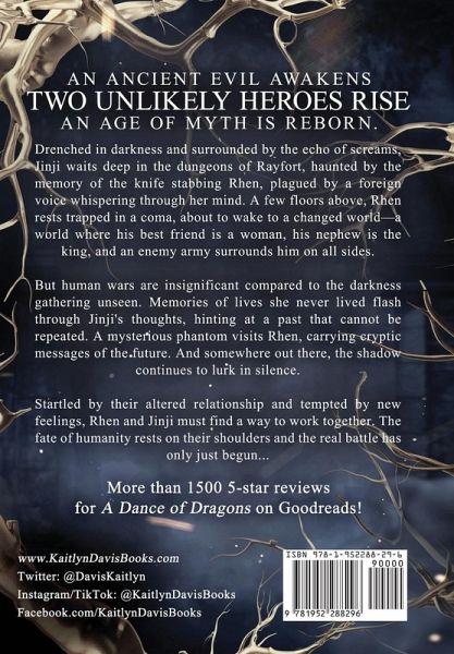 From bestselling author Kaitlyn Davis comes the second book in the thrilling A Dance of Dragons series-perfect for fans of Kristin Cashore and Tamora Pierce! Drenched in darkness and surrounded by the echo of screams, Jinji waits deep in the dungeons of Rayfort, haunted by the memory of the knife stabbing Rhen, plagued by a foreign voice whispering through her mind. A few floors above, Rhen rests trapped in a coma, about to wake to a changed world-a world where his best friend is a woman, his nephew is the king, and an enemy army surrounds him on all sides. But human wars are insignificant compared to the darkness gathering unseen. Memories of lives she never lived flash through Jinji's thoughts, hinting at a past that cannot be repeated. A mysterious phantom visits Rhen, carrying cryptic messages of the future. And somewhere out there, the shadow continues to lurk in silence. Startled by their altered relationship and tempted by new feelings, Rhen and Jinji must find a way to work together. The fate of humanity rests on their shoulders and the real battle has only just begun... Start the series for FREE today with the A Dance of Dragons: Series Starter Bundle!