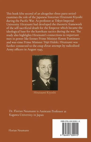 This book (the second of an altogether three parts series) examines the role of the Japanese historian Hiraizumi Kiyoshi during the Pacific War. As professor at Tokyo Imperial University Hiraizumi had developed the theoretic framework of the self-sacrificial death for the Emperor which became the ideological base for the kamikaze tactics during the war. The study also highlights Hiraizumi's connections to important men in power like former Prime Minister Konoe Fumimaro and war-time Prime Minister Tojo Hideki. Hiraizumi was further connected to the coup d'etat attempt by radicalized Army officers in August 1945.