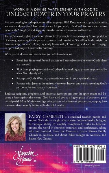 Work in a Divine Partnership with God to Unleash Power in Your Prayers Are you longing for a deeper, more effective prayer life? Do you want to pray with more accuracy and precision? God never meant for you to do this alone! You are meant to co-labor with Almighty God, tapping into the unlimited resources of heaven. Patsy Cameneti, a global leader on the topic of prayer, invites you to pray from a position of victory, accessing God's presence, power, and provision. She offers fresh insight on how to escape the snare of praying solely from earthly knowledge and learning to engage in Spirit-led prayer, hindered by nothing. With practical tools and revelation, you will learn how to: Break free from earth-bound prayers and ascend to a realm where God's plans are revealed Shift from praying to convince God to do something to prayers empowered by what God already wills Recognize God's Word as a powerful weapon in your spiritual arsenal Partner with Jesus as the stairway between heaven and earth, revealing God's purposes for every prayer you utter Embrace scripture, prophecy, and praise as access points into the spirit realm and become a force against the enemy! God has called you to a higher place of prayer-a partnership with Him. It's time to align your prayers with heaven's perspective, tapping into resources that can only be found in the spirit realm.