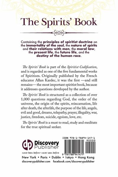 The Spirits' Book is part of the Spiritist Codification, and is regarded as one of the five fundamental works of Spiritism. Originally published by the French educator Allan Kardec, it was the first -and still remains- the most important spiritist book, because it addresses questions developed by the author. The Spirits' Book is structured as a collection of questions regarding God, the order of the universe, the origin of the spirits, reincarnation, life after death, the afterlife, the purpose of the life, angels, evil and good, dreams, telepathy, prayer, illegality, war, justice, freedom, suicide, egoism, love, etc. The answers, according to Kardec, were given to him by a group of spirits who identified themselves as "The Spirit of Truth," with whom he communicated in several Spiritist sessions. Kardec, who considered himself an "organizer" rather than an author, grouped the questions and their answers by theme, occasionally including lengthier digressions the spirits had dictated to him on specific subjects, some signed by philosophers such as Augustine of Hippo and Thomas Aquinas and writers including Voltaire. The Spirits' Book is an essential work to read, study and meditate for the true spiritual seeker. Editor's Note: In order to be more enjoyable during reading, this book is in 6" x 9" format. In the same spirit, the paper is cream-colored, which causes less fatigue to the eyes than white paper. All our publications are carefully handled both in terms of typography and design.