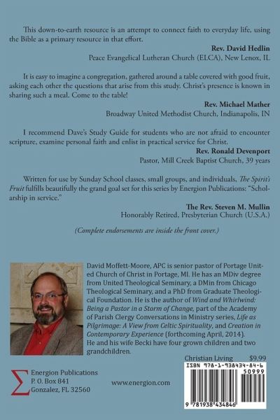 "When I was a boy, I had a really wicked temper. It was short and it was brutal. I would get in fights every recess." With that personal beginning, Dr David Moffett-Moore escorts each student into their own personal study of The Spirit's Fruit: A Participatory Study Guide. We are called together as Christians to a fruit-filled life. While God blesses us with one or more gifts as He wills, none of us receive all the gifts. But all of us are encouraged to live a Christ-led life in which all the fruit of the Spirit may grow in abundance. Dr. Moffett-Moore gives us wonderful tools for discussion and prayer to break up any hard ground and pour Christ's Living Water into our spirits so the study itself aids more fruitful growth. The Participatory Study Series from Energion Publications is designed to invite Bible students to become a part of the community of faith that produced the texts we now have as scripture by studying them empathetically and with an aim to learn and grow spiritually. Each author is free to emphasize different resources in the study, and individual students, group leaders, and teachers are encouraged to enhance their study through the use of additional resources.