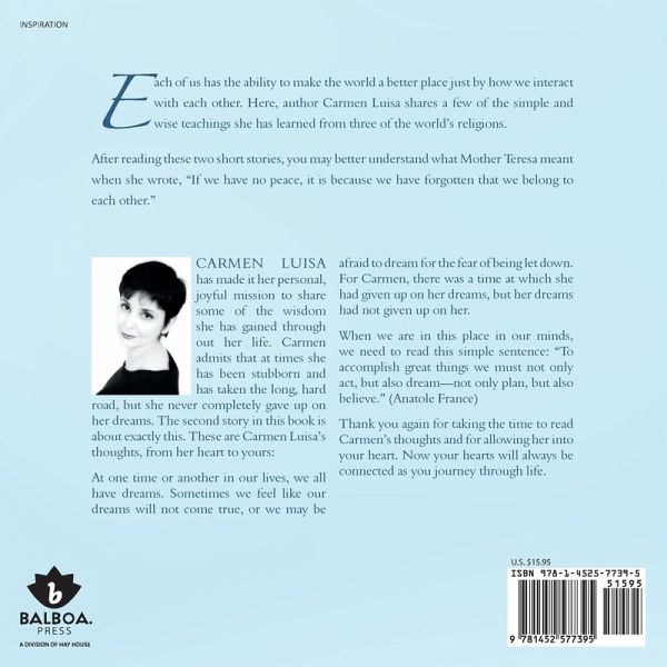 Each of us has the ability to make the world a better place just by how we interact with each other. Here, author Carmen Luisa shares a few of the simple and wise teachings she has learned from three of the world’s religions. After reading these two short stories, you may better understand what Mother Teresa meant when she wrote, "If we have no peace, it is because we have forgotten that we belong to each other."