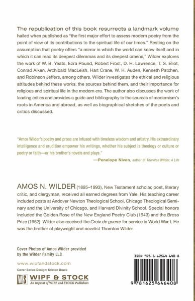 The republication of this book resurrects a landmark volume hailed when published as "the first major effort to assess modern poetry from the point of view of its contributions to the spiritual life of our times." Resting on the assumption that poetry offers "a mirror in which the world can know itself and in which it can read its deepest dilemmas and its deepest omens," Wilder explores the work of W. B. Yeats, Ezra Pound, Robert Frost, D. H. Lawrence, T. S. Eliot, Conrad Aiken, Archibald MacLeish, Hart Crane, W. H. Auden, Kenneth Patchen, and Robinson Jeffers, among others. Wilder investigates the ethical and religious attitudes behind these works, the sources behind them, and their importance for religious and spiritual life in the modern era. The author also discusses the work of leading critics and provides a guide and bibliography to the sources of modernism's roots in America and abroad, as well as biographical sketches of the poets and critics discussed.