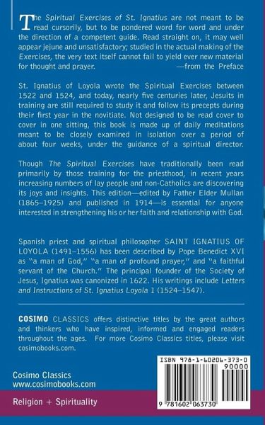 St. Ignatius of Loyola wrote the Spiritual Exercises between 1522 and 1524, and today, nearly five centuries later, Jesuits in training are still required to study it and follow its precepts during their first year in the novitiate. Not designed to be read cover to cover in one sitting, this book is made up of daily meditations meant to be closely examined in isolation over a period of about four weeks, under the guidance of a spiritual director. Though The Spiritual Exercises have traditionally been read primarily by those training for the priesthood, in recent years increasing numbers of lay people and non-Catholics are discovering its joys and insights. This edition-edited by Father Elder Mullan (1865-1925) and published in 1914-is essential for anyone interested in strengthening his or her faith and relationship with God. Spanish priest and spiritual philosopher SAINT IGNATIUS OF LOYOLA (1491-1556) has been described by Pope Benedict XVI as "a man of God," "a man of profound prayer," and "a faithful servant of the Church." The principal founder of the Society of Jesus, Ignatius was canonized in 1622. His writings include Letters and Instructions of St. Ignatius Loyola 1 (1524-1547).
