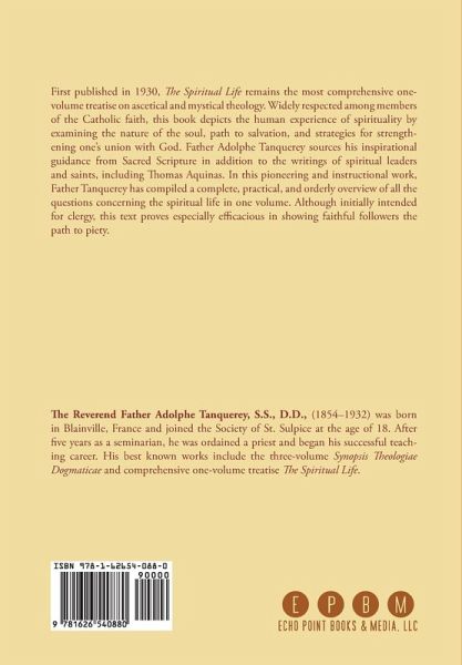First published in 1930, The Spiritual Life remains the most comprehensive one-volume treatise on ascetical and mystical theology. Widely respected among members of the Catholic faith, this book depicts the human experience of spirituality by examining the nature of the soul, path to salvation, and strategies for strengthening one's union with God. Father Adolphe Tanquerey sources his inspirational guidance from Sacred Scripture in addition to the writings of spiritual leaders and saints, including Thomas Aquinas. In this pioneering and instructional work, Father Tanquerey has compiled a complete, practical, and orderly overview of all the questions concerning the spiritual life in one volume. Although initially intended for clergy, this text proves especially efficacious in showing faithful followers the path to piety. The Reverend Father Adolphe Tanquerey, S.S., D.D., (1854-1932) was born in Blainville, France and joined the Society of St. Sulpice at the age of 18. After five years as a seminarian, he was ordained a priest and began his successful teaching career. His best known works include the three-volume Synopsis Theologiae Dogmaticae and comprehensive one-volume treatise The Spiritual Life. For a more durable hardcover edition of The Spiritual Life, please search ISBN 1626540896.