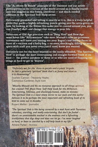 The "As Above So Below" principle of the Universe and our active participation in the creation of the world around us is finally seared into our noggins in this funny, anecdotal-and much needed addition to the Spiritual Self-Help sector. Deliciously grounded and telling it exactly as it is, this is a truly helpful guide that packs a highly refreshing punch: giving you the nitty-gritty on how, by looking at the Divine Dis-order you've created around you, you can (finally) shift and change that energy in your life. Advocates of old-age practices such as "Feng Shui" and New-Age must-haves like "Affirmations" take note: Masuak's take-mp prisoners irreverance will leave you tossing out your Bagua's and Smiley-faces in favor of a vacuum and a hefty bag- or ever, shockingly, filling up your space with stuff you never even (until now) knew you wanted. Definitely not for the faint-hearted or the easilyoffended, "The SpiritualSlob" is perhaps the most entertaining and straight-forward book of its kind-the perfect antidote to those of us who are tired of flapping our wings so hard to get to heaven.