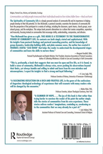 Find out how communities can help people transcend their individual needs to live richer, fuller lives The Spirituality of Community Life is a deeply personal analysis of community life and its importance in helping people develop to their full potential. Dr. Ron McDonald, a pastoral counselor, examines the dynamics of community life from the perspective of the participant in a variety of settings, including the classroom, sports teams, church groups, recreational groups, and the workplace. This unique book presents alternatives to a culture that creates competition, separation, and insecurity, focusing instead on communities that encourage civility, understanding, compromise, and altruism. The Spirituality of Community Life analyzes the need for community life and the obstacles to it found in American culture, where money and power rule and people conform to stay out of trouble. The book presents insights into the importance and manner of building communities instead of efficient organizations that are fueled by crisis. Topics examined include growth and size as mistaken ideals, early Christian community life, the What Would Jesus Do? phenomenon, the spiritual disease caused by fighting enemies, the place of art and dance in community life, and leadership. The Spirituality of Community Life looks at a variety of communities, including: hikers on the Appalachian Trail a college track and country team a seminary course on the Gospel of Mark a church health center a traditional Quaker meeting an open education elementary school a championship basketball team an annual meeting of pastoral counselors and much more The Spirituality of Community Life also examines the deeply spiritual nature of community life, including insights into early Christian community history and how community life was crucial in the lives of our greatest spiritual leaders. The book is essential for anyone seeking to be the kind of leader who can build and nurture communities.