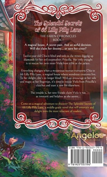 A magical house. A secret past. And an awful decision. Will she claim her destiny... or save her sister? Twelve-year-old Chia is blind and toils in the mines digging up diamonds for her evil stepmother, Priscilla. Her only thought is to rescue her twin sister Viola from a life at the palace. Everything changes when a mysterious woman transports Chia to 66 Lilly Pilly Lane, a magical house where wondrous creatures live. To her delight, she's no longer blind! With an entourage at her side and magic at her fingertips, it's time to rescue Viola from Priscilla's clutches and start a new life elsewhere. The trouble is, her new friends claim Viola is not as innocent and helpless as she seems... Come on a magical adventure to discover The Splendid Secrets of 66 Lilly Pilly Lane, a middle-grade novel that will entertain and delight even the most reluctant of readers. Ideal for kids ages 9+ and adults who love adventurous, page-turning fantasy stories.