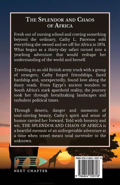 Fresh out of nursing school and craving something beyond the ordinary, Cathy L. Patrenos sold everything she owned and set off for Africa in 1974. What began as a thirty-day safari turned into a yearlong adventure that would reshape her understanding of the world and herself. Traveling in an old British army truck with a group of strangers, Cathy forged friendships, faced hardship and, unexpectedly, found love along the dusty roads. From Egypt's ancient wonders to South Africa's stark apartheid reality, the journey took her through breathtaking landscapes and turbulent political times. Through deserts, danger and moments of soul-stirring beauty, Cathy's spirit and sense of humor carried her forward. Told with honesty and wit, THE SPLENDOR AND CHAOS OF AFRICA is a heartful memoir of an unforgettable adventure at a time when travel meant total surrender to the unknown.