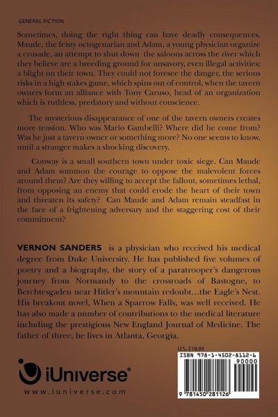 Conway is a peaceful southern town. Or is it? Across the river from this quiet burg is a row of saloons, and Maude, a feisty octogenarian, believes something doesn't feel right. Along with a young physician named Adam, Maude is beginning to think the so-called saloons are actually havens for unsavory and illegal activities. This collection of saloons is a blight on the town of Conway, and someone should do something about it. Why shouldn't it be old Maude and Adam? Together, they organize a crusade to get the saloons shut down. It's a moral battle more than anything else, or so they believe. When one of the saloon owners disappears, however, the moral battle becomes a battle to stay alive, despite opposing forces and the predatory Tony Caruso, who holds all the cards. The Splendor of Light follows Maude and Adam as they continue down the dark path of their crusade. Lives are in danger of being lost; a town is on the verge of collapse. Will Maude and Adam remain steadfast in their cause, despite a predatory and ruthless adversary? Will they accept the consequences of their answers, or will they fall into moral darkness themselves and lose everything they value?