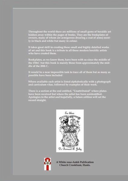 Volume 6 (& final) of my series of A4, soft card-covered books which feature sample heraldic bookplates from modern heraldic artists throughout the world. Many illustrations in full colour, monochrome and black & white. It follows the same format as my "The Splendour of the Heraldic Artist" which featured artists who worked at or for the College of Arms, London and Volumes 1-5 of, "The Splendour of the Modern Heraldic Bookplate Artist" Each artist has a photograph (if supplied) a c.v. or short piece about themselves, with contact numbers/addresses (for possible commissions), followed by examples of their work.