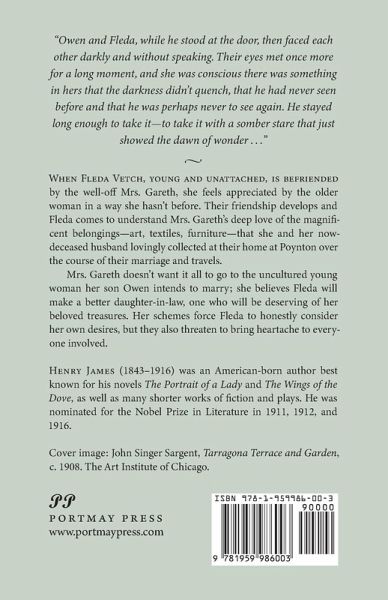 When Fleda Vetch, young and unattached, is befriended by the well-off Mrs. Gareth, she feels appreciated by the older woman in a way she hasn't before. Their friendship develops and Fleda comes to understand Mrs. Gareth's deep love of the magnificent belongings-art, textiles, furniture-that she and her now-deceased husband lovingly collected at their home at Poynton over the course of their marriage and travels. Mrs. Gareth doesn't want it all to go to the uncultured young woman her son Owen intends to marry; she believes Fleda will make a better daughter-in-law, one who will be deserving of her beloved treasures. Her schemes force Fleda to honestly consider her own desires, but they also threaten to bring heartache to everyone involved.