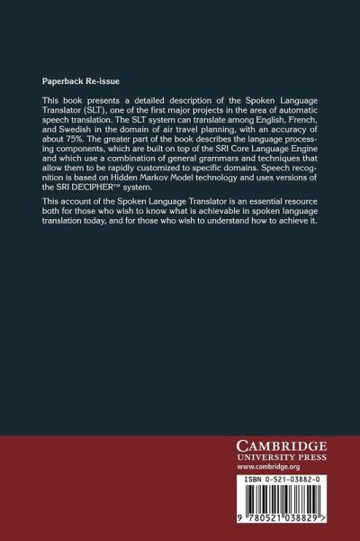 This book presents a detailed description of Spoken Language Translator (SLT), one of the first major projects in the area of automatic speech translation. The SLT system can translate between English, French, and Swedish in the domain of air travel planning, using a vocabulary of about 1500 words, and with an accuracy of about 75%. The greater part of the book describes the language processing components, which are largely built on top of the SRI Core Language Engine, using a combination of general grammars and techniques that allow them to be rapidly customized to specific domains. Speech recognition is based on Hidden Markov Mode technology, and uses versions of the SRI DECIPHER system. This account of the Spoken Language Translator should be an essential resource both for those who wish to know what is achievable in spoken-language translation today, and for those who wish to understand how to achieve it.