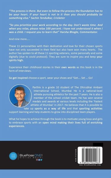 The 'Sports Stories 'is a compilation of interviews with personalities who have made significant contributions to the world of sports in manifold ways. These interviews are enlightening and inspiring to the core. The conversations in ' The Sports Stories 'walk us through the highs and lows, success and failures along with the most shining moments of the lives of each of the personalities interviewed. The time Parthiv has spent on conducting the research, talking to the people, and compiling these interviews is approximately more than a year. In preparation for this, he has consulted many experts and sought their counsel. The non-profit organization "Divyang Welfare Association" located in Beed, Maharashtra, will be getting the total proceeds from the sale of this book.