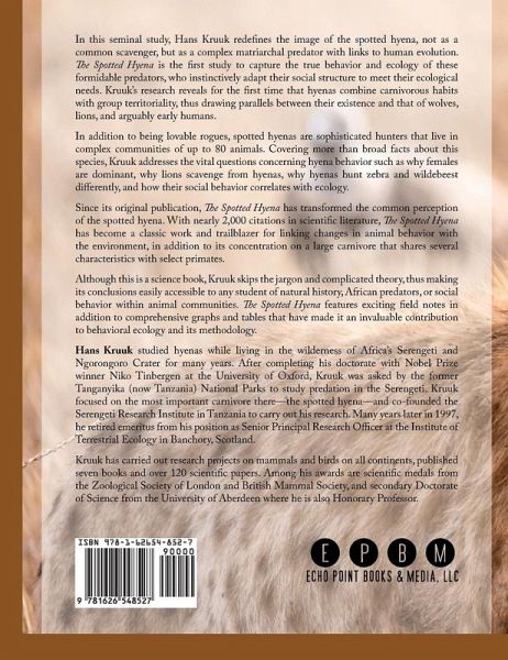 In this seminal study, Hans Kruuk redefines the image of the spotted hyena, not as a common scavenger, but as a complex matriarchal predator with links to human evolution. The Spotted Hyena is the first study to capture the true behavior and ecology of these formidable predators, who instinctively adapt their social structure to meet their ecological needs. Kruuk's research reveals for the first time that hyenas combine carnivorous habits with group territoriality, thus drawing parallels between their existence and that of wolves, lions, and arguably early humans. In addition to being lovable rogues, spotted hyenas are sophisticated hunters that live in complex communities of up to 80 animals. Covering more than broad facts about this species, Kruuk addresses the vital questions concerning hyena behavior such as why females are dominant, why lions scavenge from hyenas, why hyenas hunt zebra and wildebeest differently, and how their social behavior correlates with ecology. Since its original publication, The Spotted Hyena has transformed the common perception of the spotted hyena. With nearly 2,000 citations in scientific literature, The Spotted Hyena has become a classic work and trailblazer for linking changes in animal behavior with the environment, in addition to its concentration on a large carnivore that shares several characteristics with select primates. Although this is a science book, Kruuk skips the jargon and complicated theory, thus making its conclusions easily accessible to any student of natural history, African predators, or social behavior within animal communities. The Spotted Hyena features exciting field notes in addition to comprehensive graphs and tables that have made it an invaluable contribution to behavioral ecology and its methodology. Hans Kruuk studied hyenas while living in the wilderness of Africa's Serengeti and Ngorongoro Crater for many years. After completing his doctorate with Nobel Prize winner Niko Tinbergen at the University of Oxford, Kruuk was asked by the former Tanganyika (now Tanzania) National Parks to study predation in the Serengeti. Kruuk focused on the most important carnivore there—the spotted hyena—and co-founded the Serengeti Research Institute in Tanzania to carry out his research. Many years later in 1997, he retired emeritus from his position as Senior Principal Research Officer at the Institute of Terrestrial Ecology in Banchory, Scotland. Kruuk has carried out research projects on mammals and birds on all continents, published seven books and over 120 scientific papers. Among his awards are scientific medals from the Zoological Society of London and British Mammal Society, and secondary Doctorate of Science from the University of Aberdeen where he is also Honorary Professor.