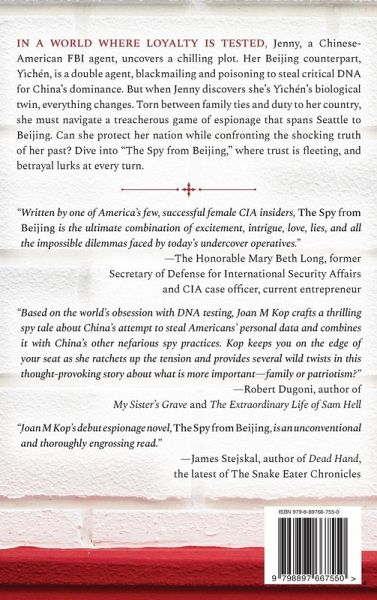 In a world where loyalty is tested, Jenny, a Chinese-American FBI agent, uncovers a chilling plot. Her Beijing counterpart, Yìchén, is a double agent, blackmailing and poisoning to steal critical DNA for China's dominance. But when Jenny discovers she's Yìchén's biological twin, everything changes. Torn between family ties and duty to her country, she must navigate a treacherous game of espionage that spans Seattle to Beijing. Can she protect her nation while confronting the shocking truth of her past? Dive into "The Spy from Beijing," where trust is fleeting, and betrayal lurks at every turn.