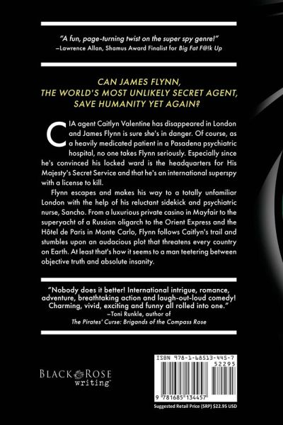 "A laugh out loud, action-packed thrill ride!" -Christy Cooper-Burnett, author of No Way Home CIA agent Caitlyn Valentine has disappeared in London and James Flynn is sure she's in danger. Of course, as a heavily medicated patient in a Pasadena psychiatric hospital, no one takes Flynn seriously. Especially since he's convinced his locked ward is the headquarters for His Majesty's Secret Service and that he's an international superspy with a license to kill. Flynn escapes and makes his way to a totally unfamiliar London with the help of his reluctant sidekick and psychiatric nurse, Sancho. From a luxurious private casino in Mayfair to the superyacht of a Russian oligarch to the Orient Express and the Hôtel de Paris in Monte Carlo, Flynn follows Caitlyn's trail and stumbles upon an audacious plot that threatens every country on Earth. At least that's how it seems to a man teetering between objective truth and absolute insanity.