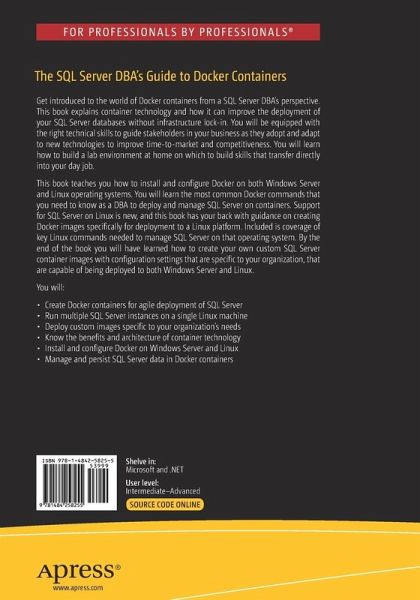 Get introduced to the world of Docker containers from a SQL Server DBA's perspective. This book explains container technology and how it can improve the deployment of your SQL Server databases without infrastructure lock-in. You will be equipped with the right technical skills to guide stakeholders in your business as they adopt and adapt to new technologies to improve time-to-market and competitiveness. You will learn how to build a lab environment at home on which to build skills that transfer directly into your day job.