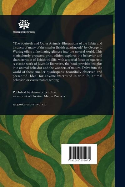 "The Squirrels and Other Animals: Illustrations of the habits and instincts of many of the smaller British quadrupeds" by George E. Waring offers a fascinating glimpse into the natural world. This meticulously prepared print edition explores the behavior and characteristics of British wildlife, with a special focus on squirrels. A classic work of juvenile literature, the book provides insights into animal behavior and the wonders of nature. Delve into the world of these smaller quadrupeds, beautifully observed and presented. Ideal for anyone interested in wildlife, animal behavior, or classic nature writing. This work has been selected by scholars as being culturally important, and is part of the knowledge base of civilization as we know it. This work is in the public domain in the United States of America, and possibly other nations. Within the United States, you may freely copy and distribute this work, as no entity (individual or corporate) has a copyright on the body of the work. Scholars believe, and we concur, that this work is important enough to be preserved, reproduced, and made generally available to the public. We appreciate your support of the preservation process, and thank you for being an important part of keeping this knowledge alive and relevant.