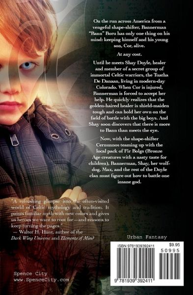 On the run across America from a vengeful shape-shifter, Bannerman "Bann" Boru has only one thing on his mind: keeping himself and his young son, Cor, alive. At any cost. Then he meets Shay Doyle, healer and member of a secret group of immortal Celtic warriors, the Tuatha De Danaan, who live in modern-day Colorado. When Cor is injured, Bannerman is forced to accept her help. He quickly realizes that the golden-haired healer is shield-maiden tough and can hold her own on the field of battle with the big boys. And Shay soon discovers that there is more to Bann then meets the eye. Now, with the shape-shifter Cernunnos teaming up with the local pack of Fir Bolgs (Bronze Age creatures with a nasty taste for children), Bannerman, Shay, her wolf-dog Max, and the rest of the Doyle clan must figure out how to battle one insane god.