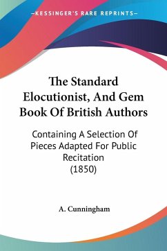 The Standard Elocutionist, And Gem Book Of British Authors: Containing A Selection Of Pieces Adapted For Public Recitation (1850) is a book authored by A. Cunningham. This book is a collection of selected pieces of literature from British authors that are suitable for public recitation. The book is intended to serve as a guide for elocutionists, orators, and public speakers in improving their skills in public speaking. It contains a wide range of literary works, including poems, speeches, and prose pieces. The book is designed to help readers improve their pronunciation, articulation, and delivery of speeches. It is a valuable resource for anyone seeking to improve their public speaking skills, as well as for those interested in British literature. The book was first published in 1850 and has since become a classic in the field of elocution and public speaking.Or Private Reading From Shakespeare, Milton, Young, Addison, Hood, Campbell, Pope, Burns, Scott, Byron, Southey, Gray, Etc.This scarce antiquarian book is a facsimile reprint of the old original and may contain some imperfections such as library marks and notations. Because we believe this work is culturally important, we have made it available as part of our commitment for protecting, preserving, and promoting the world's literature in affordable, high quality, modern editions, that are true to their original work.